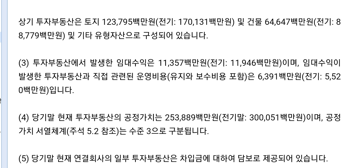 - 투자부동산 : 0.2조원 (공정가치 0.25조원)