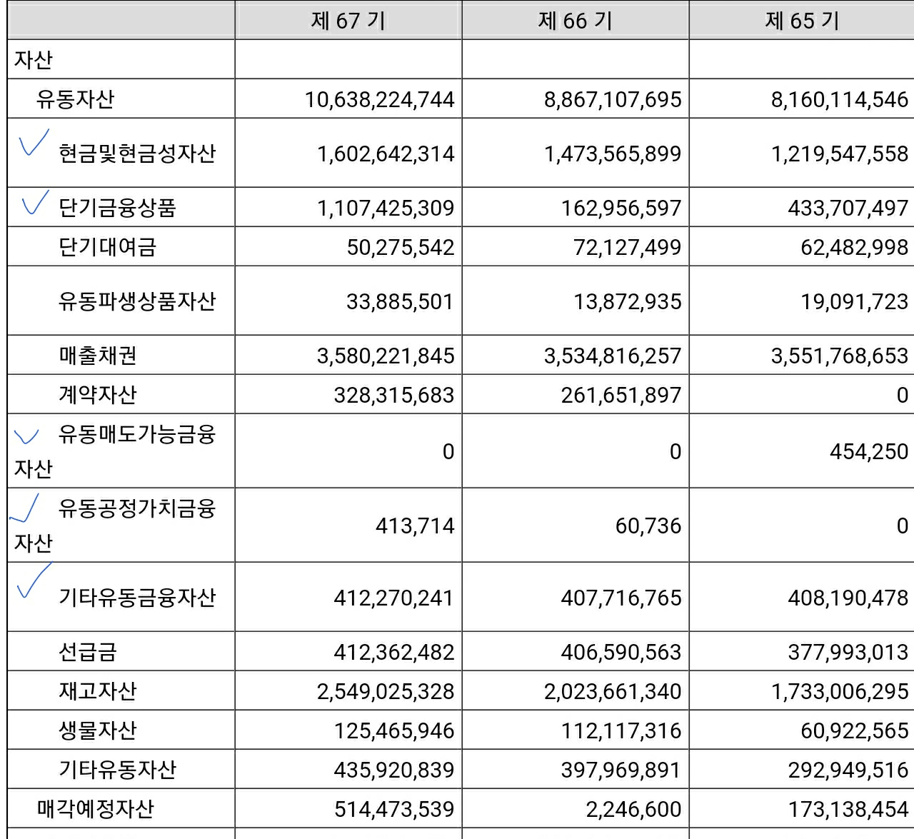 CJ제일제당의 19년도 연결재무제표(제67기)를 보면 유동자산 3.1조원 비유동자산 1.2조원으로 다음과 같이 투자하고 있습니다.