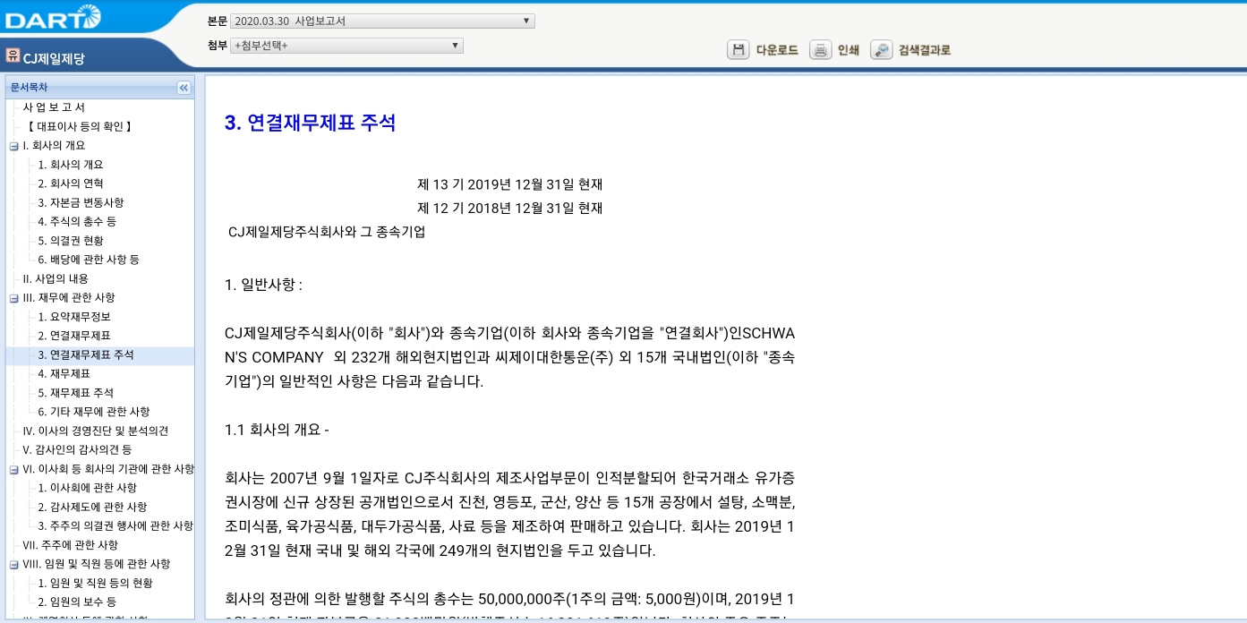 | 2. 금감원 전자공시에서 재무제표 찾기 (feat. CJ제일제당) (0) | 2020.12.04 |