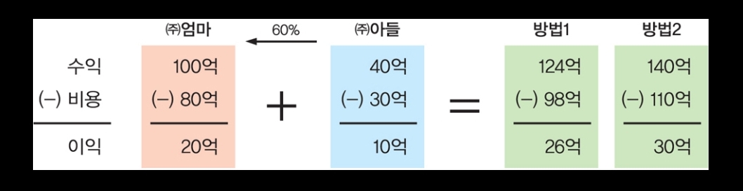 - (주)엄마는 자회사인 (주)아들의 지분을 60% 보유하고 있다.