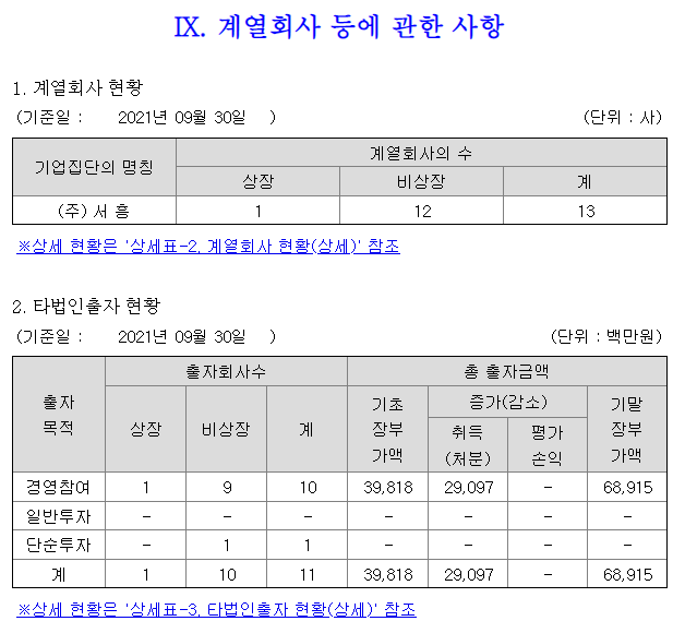 - 기말잔액의 "지분율", "당기순이익"을 본다. 젤텍, 서흥아메리카, 서흥베트남 순으로 큼. 참고로 내츄럴엔도텍, 엔도더마 당기순손실이 큰 편이나 낮은 지분율 때문에 영향이 크지 않음.