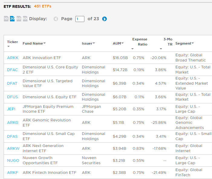 1. ETF.com > ETF TOOL&DATA > ETF Screener & database