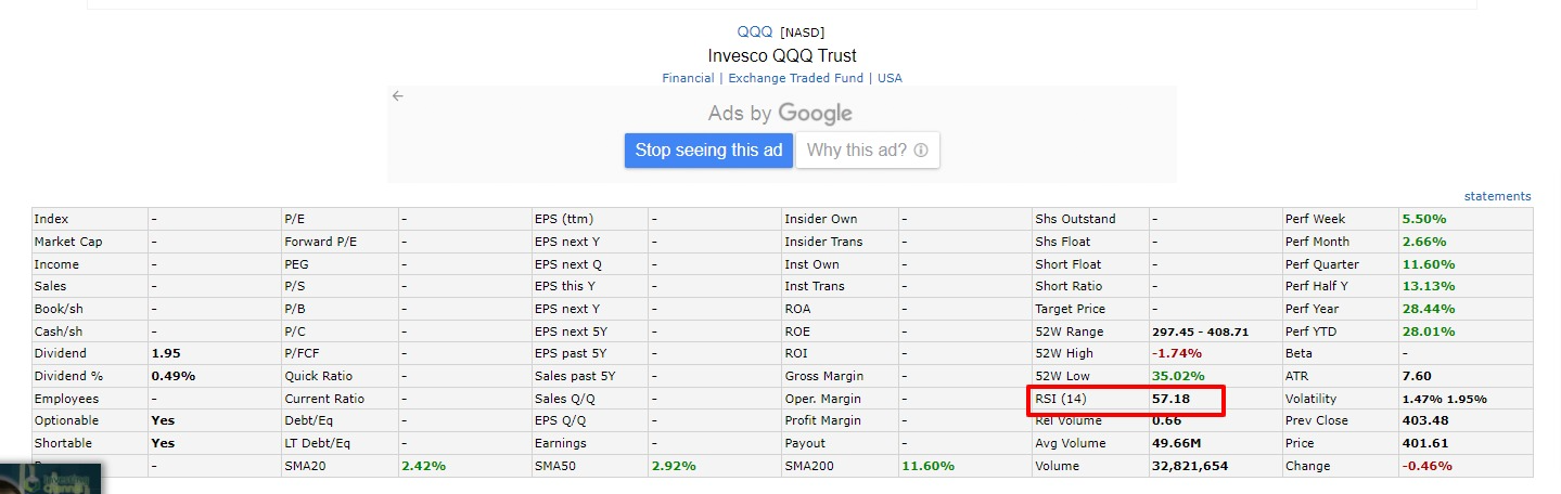 - 조회일 현재 QQQ의 RIS는 57.18로 중간구간 정도로 보실 수 있으실 것입니다.